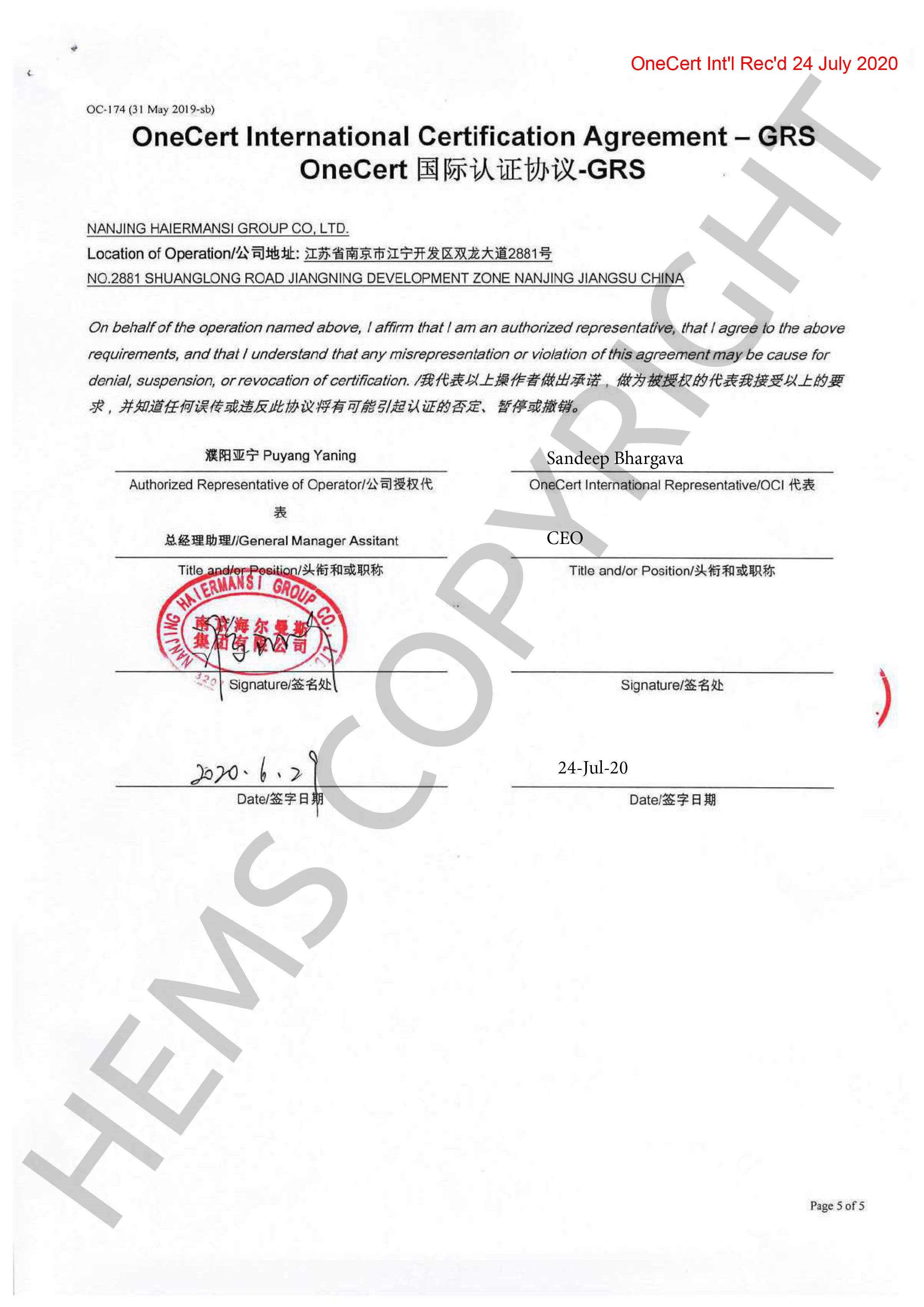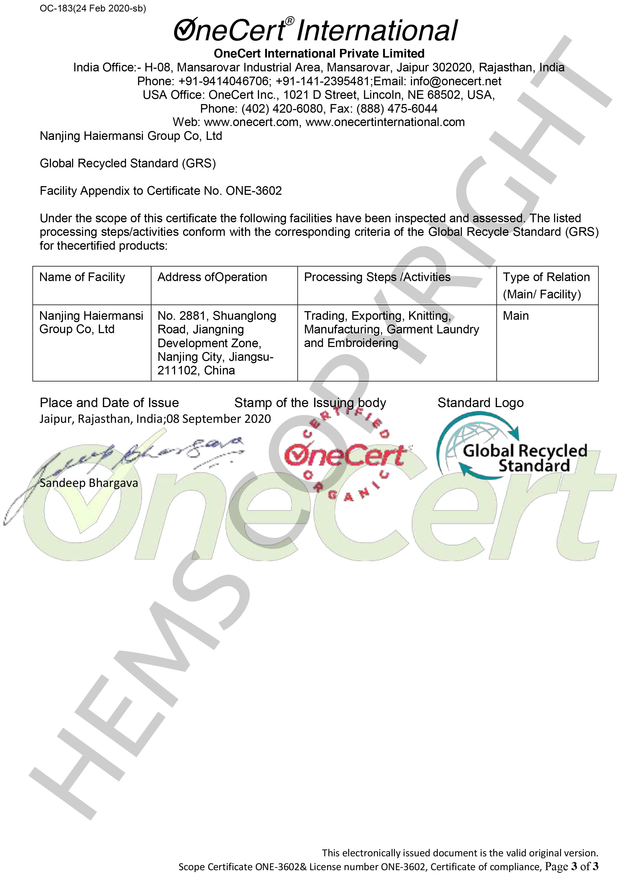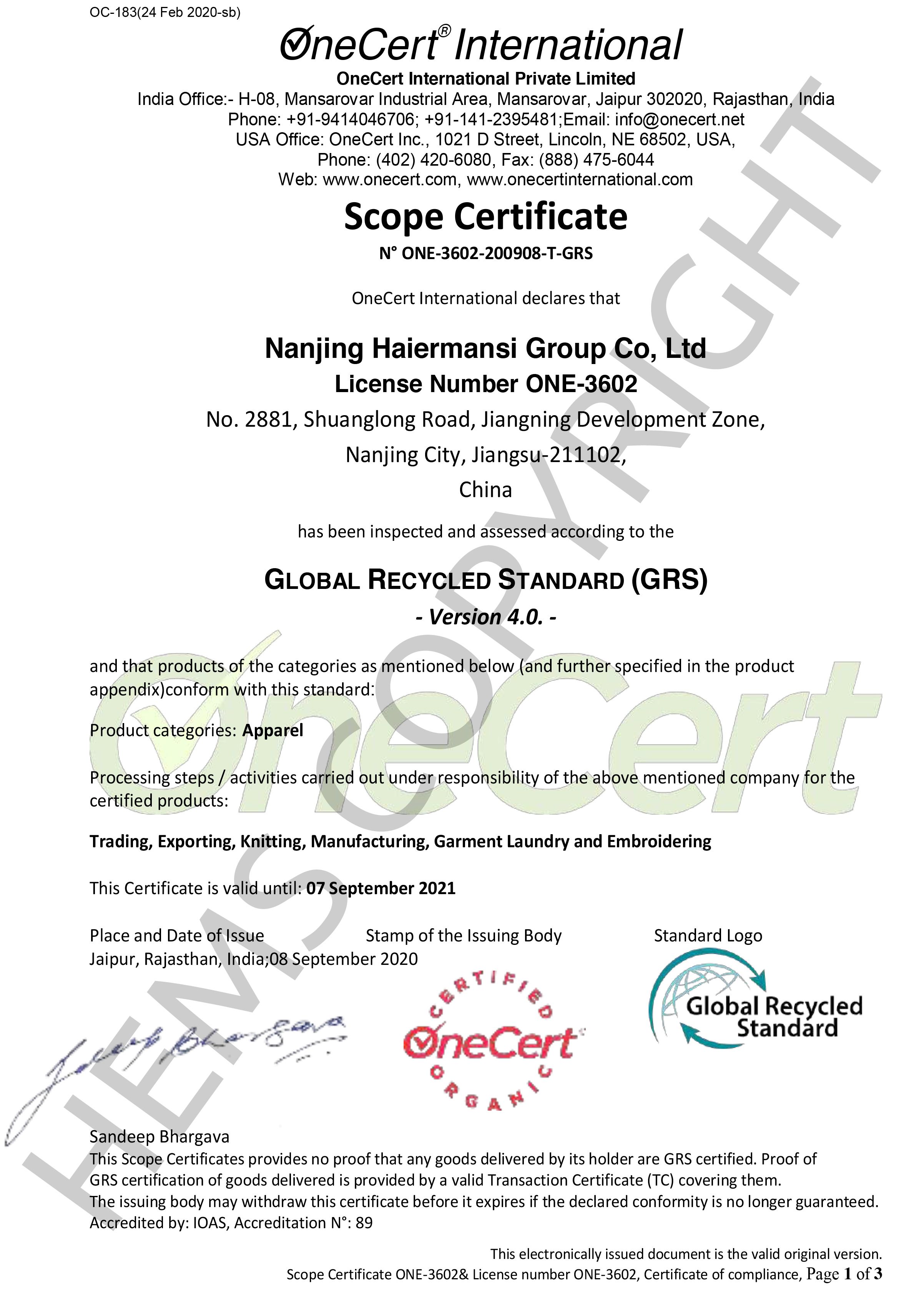 Certified by OneCertSC. No.ONE-3602-200908-T-GRS