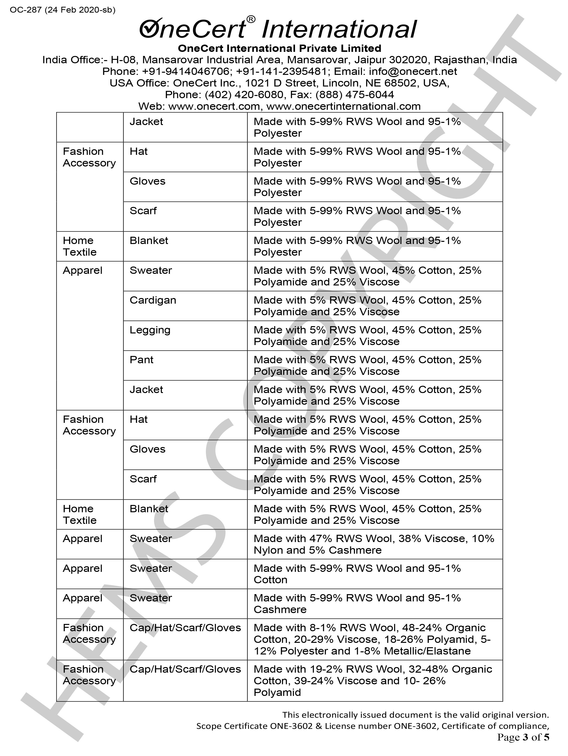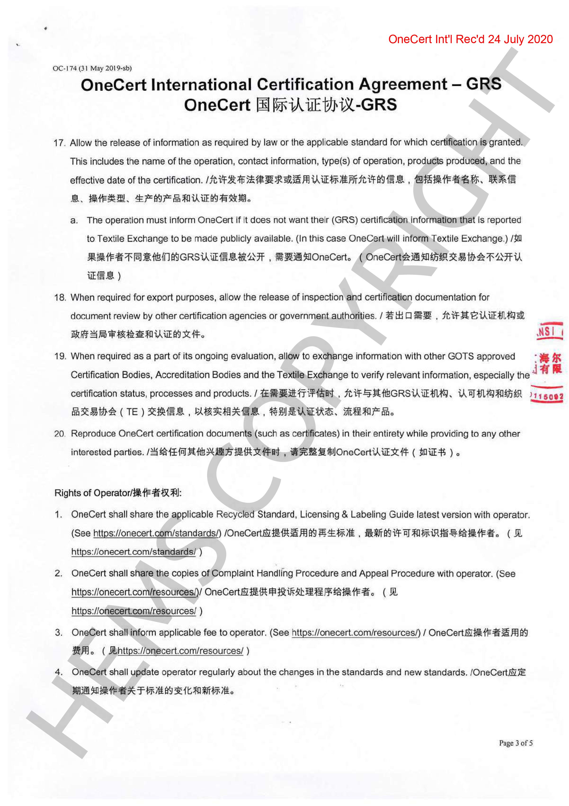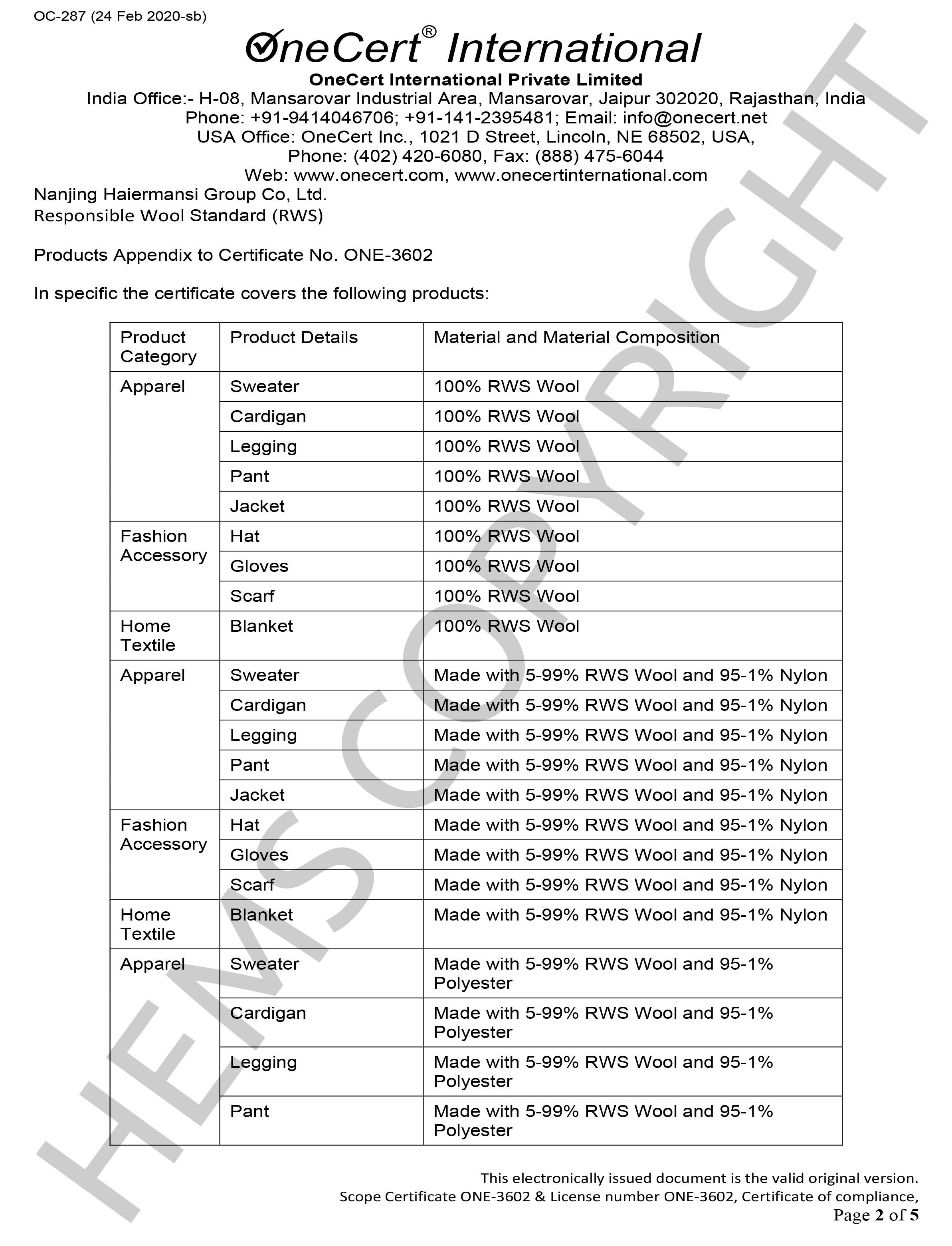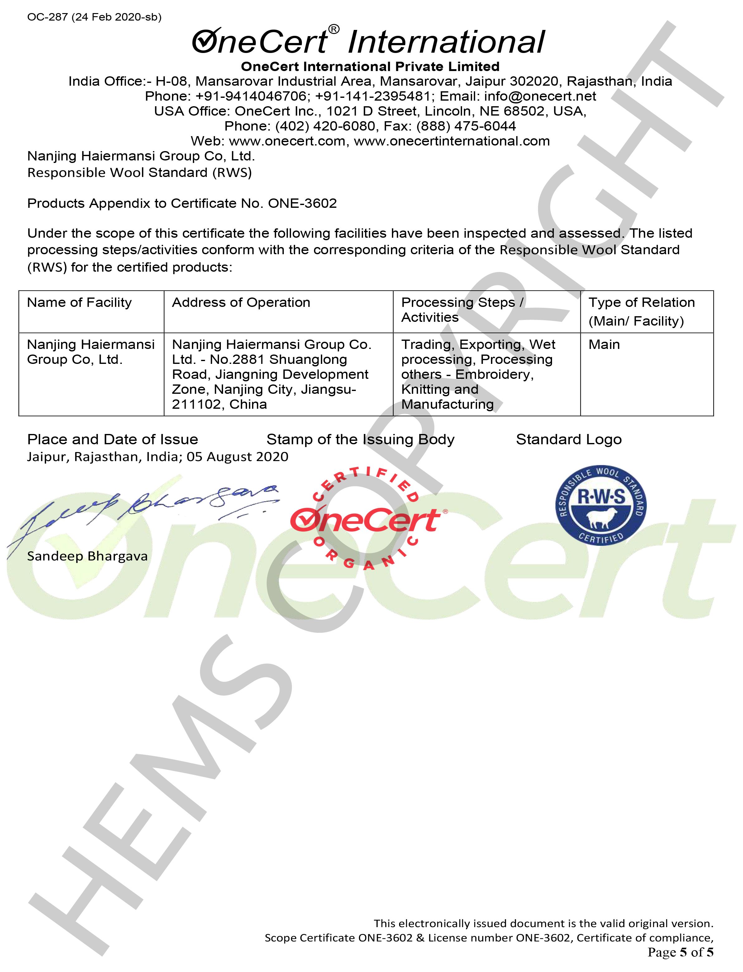 Certified by OneCertSC. No.ONE-3602-200228-T-RWS