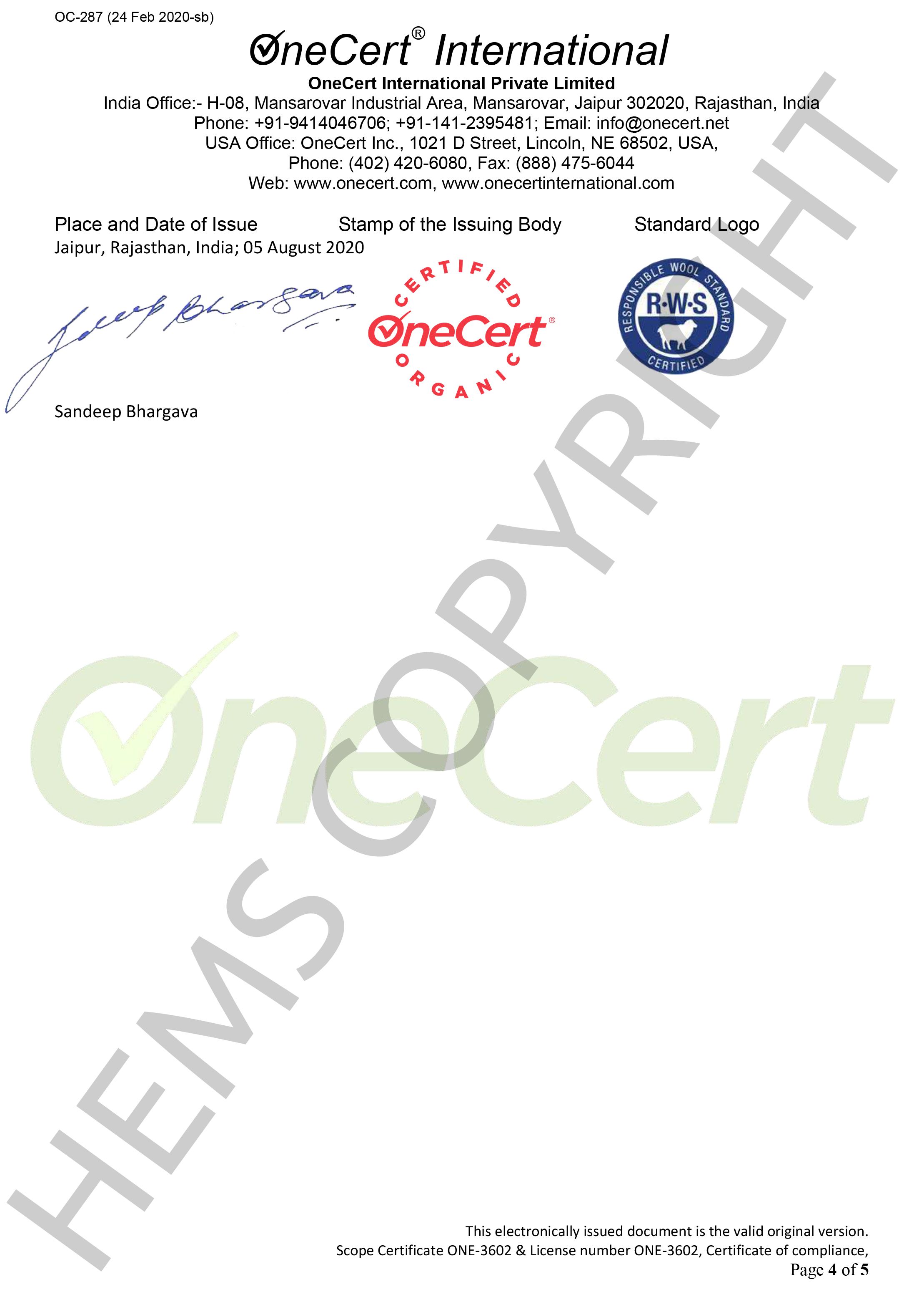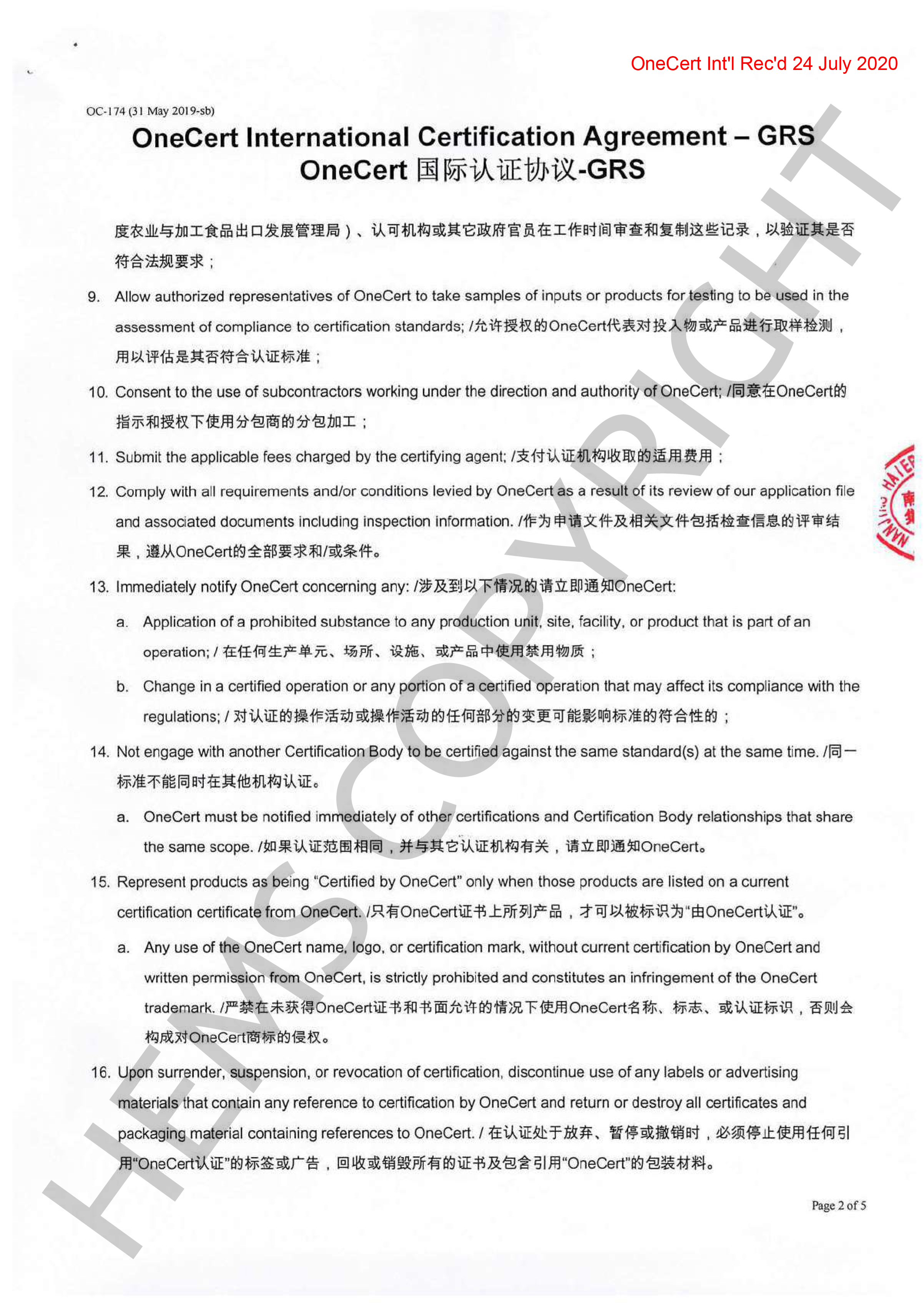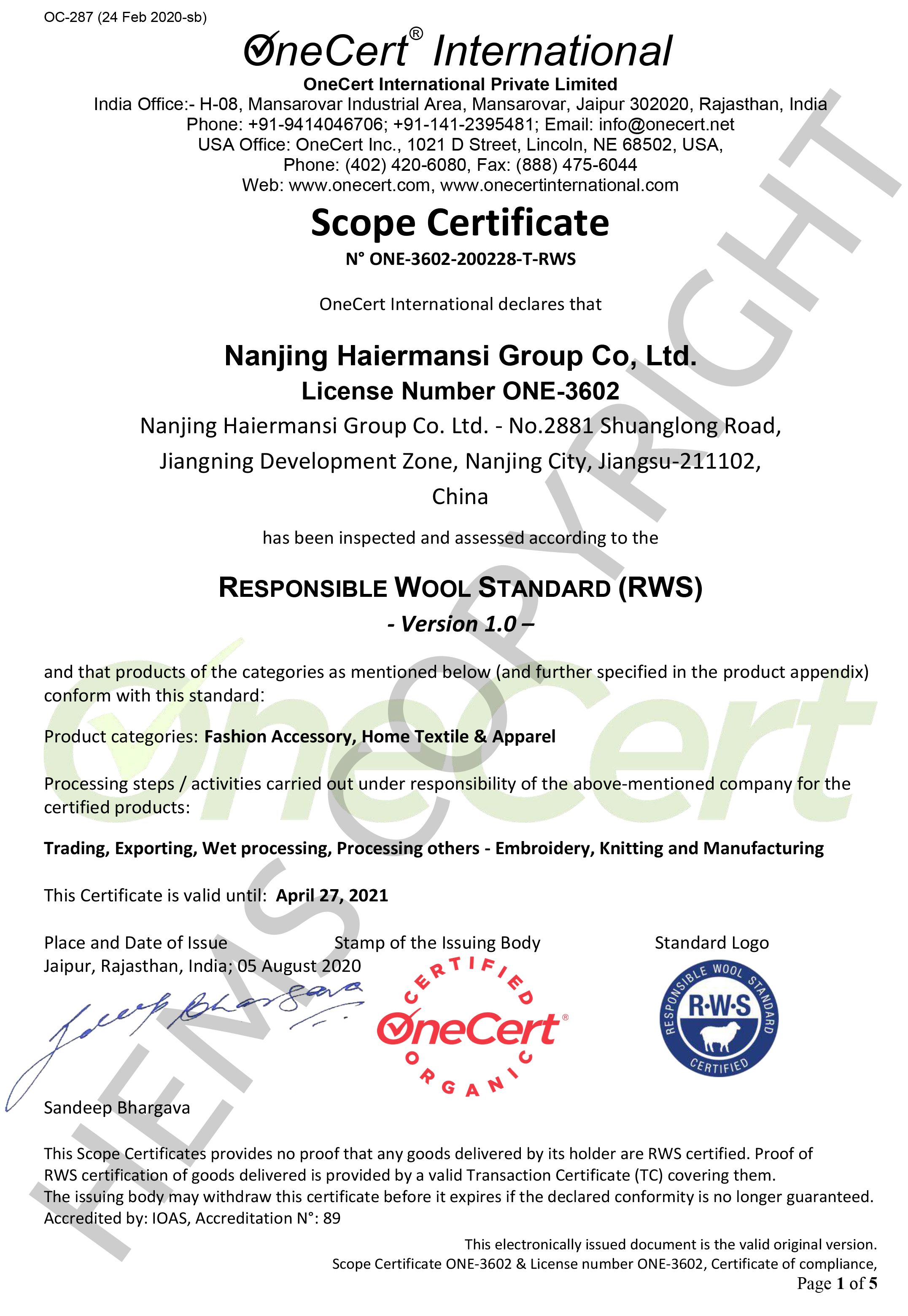 Certified by OneCertSC. No.ONE-3602-200228-T-RWS