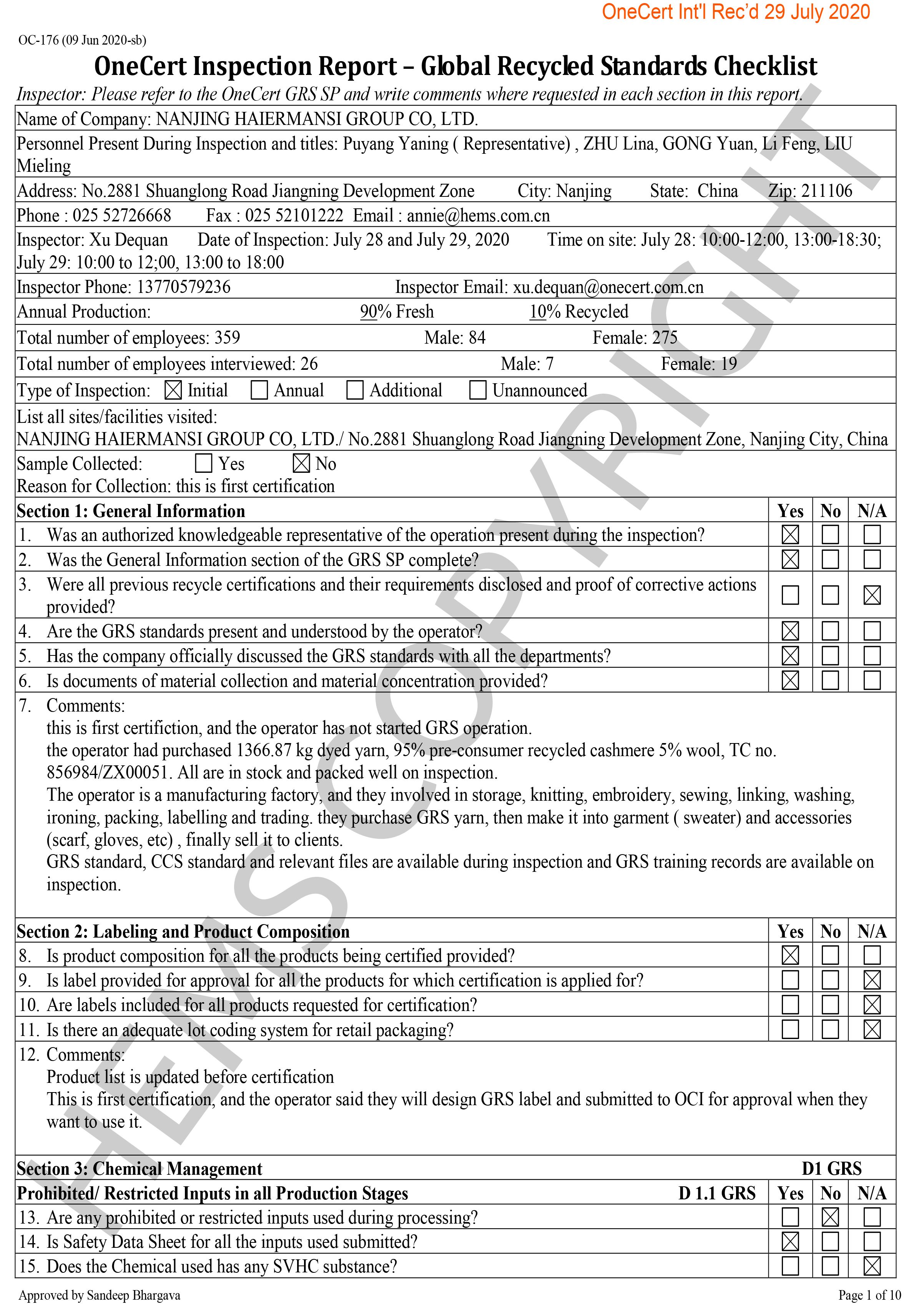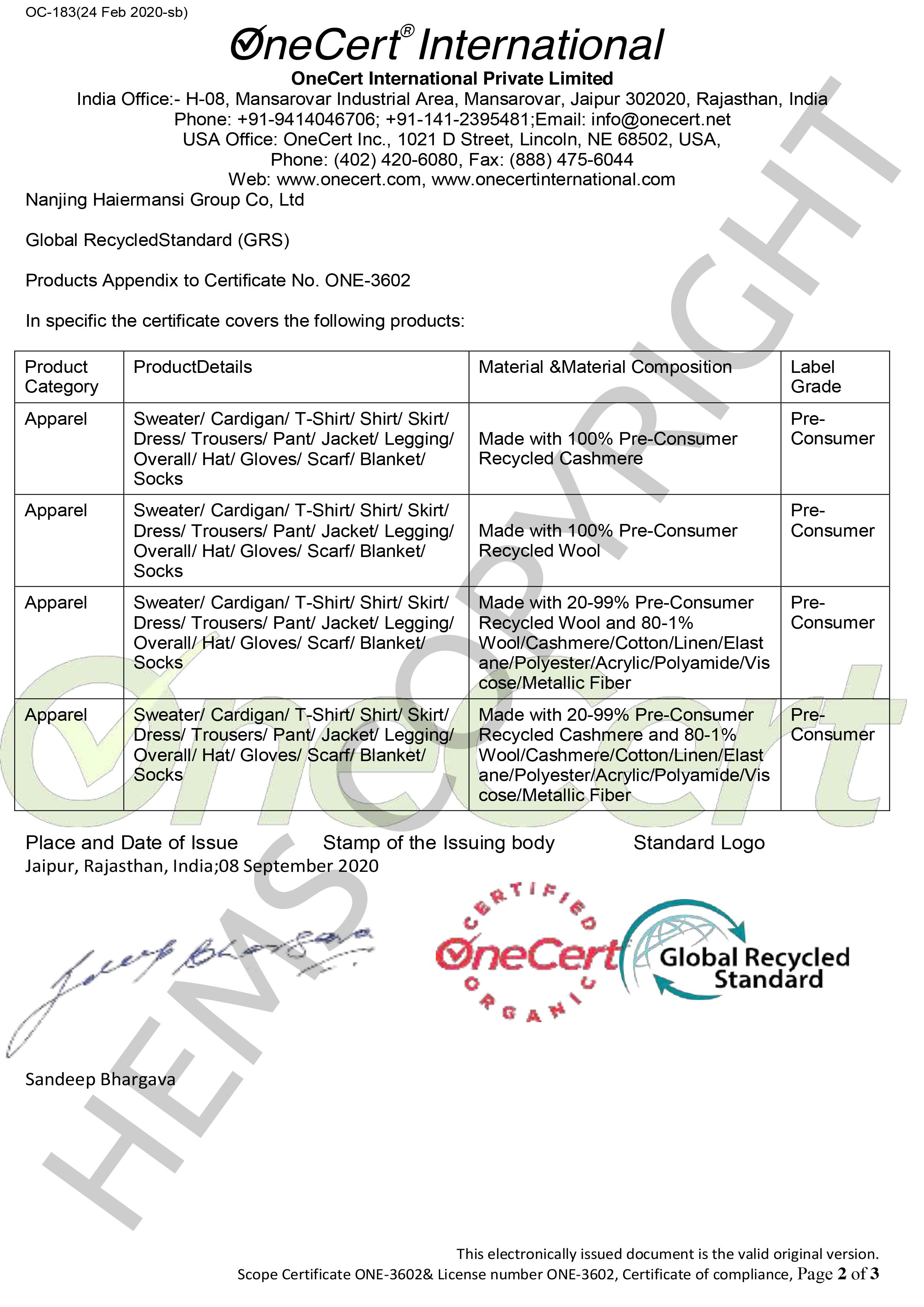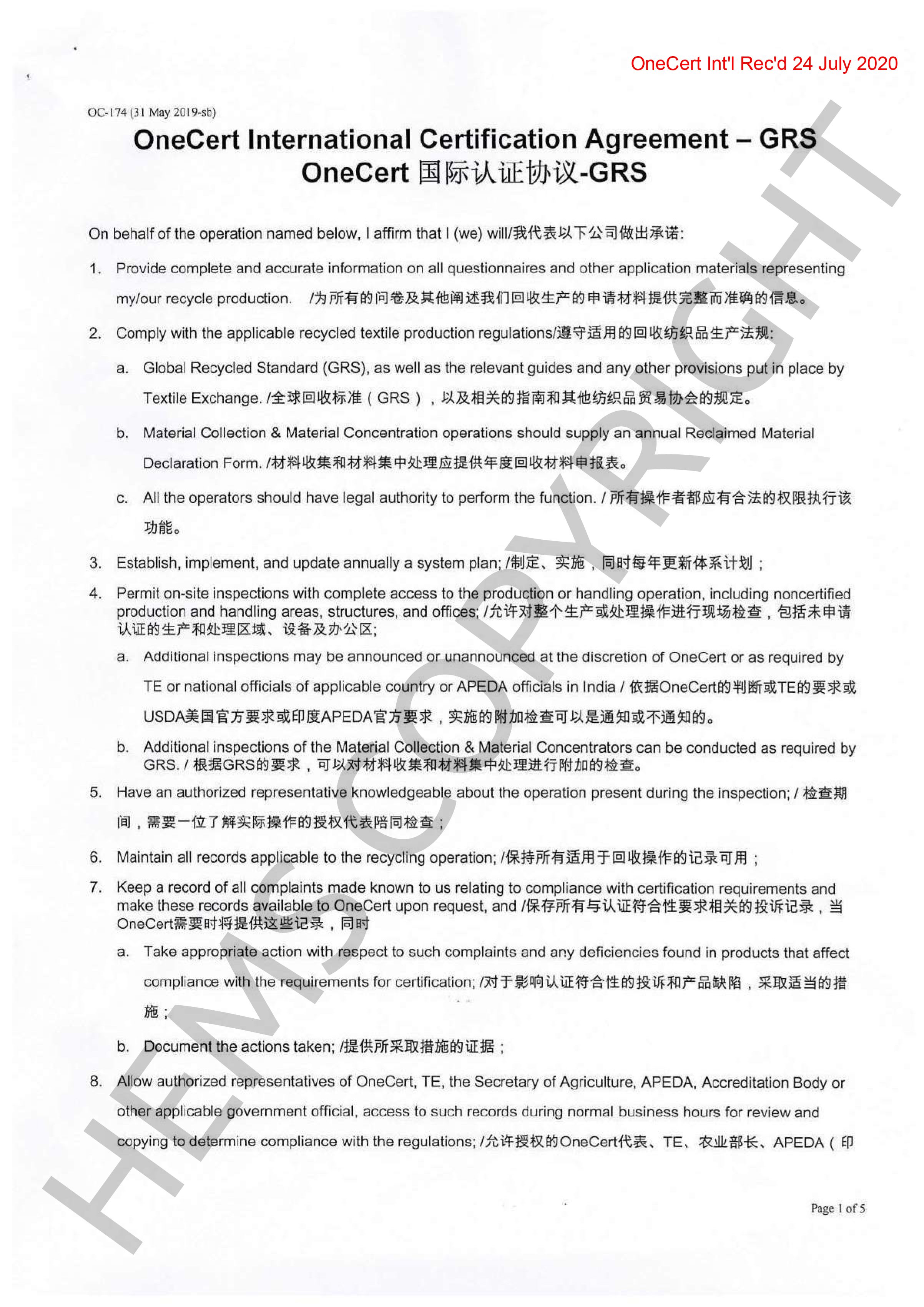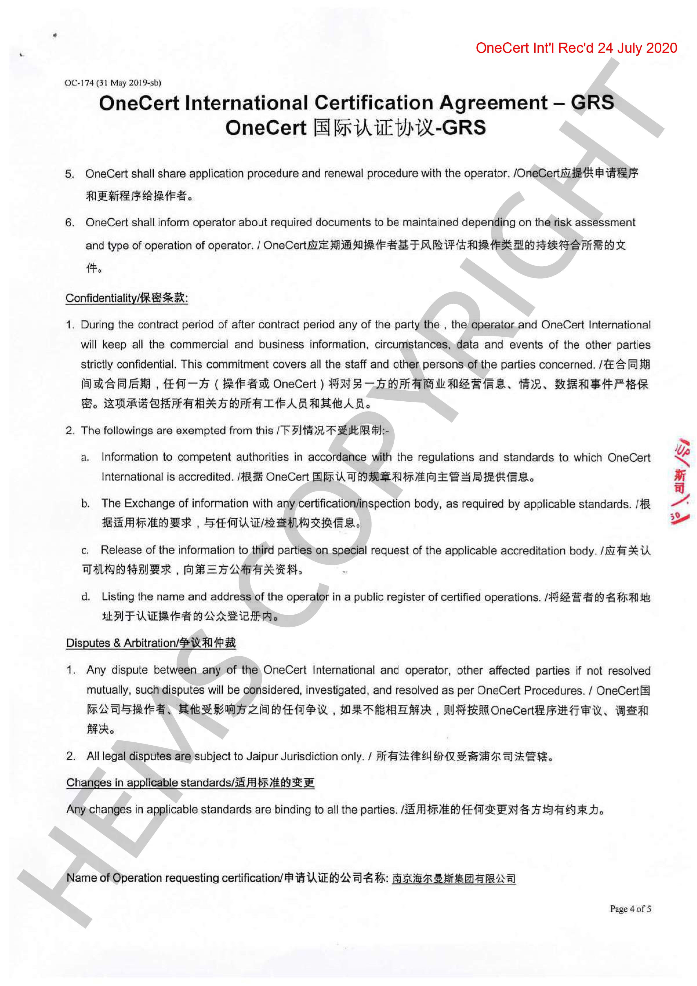 Certified by OneCertSC. No.ONE-3602-200908-T-GRS